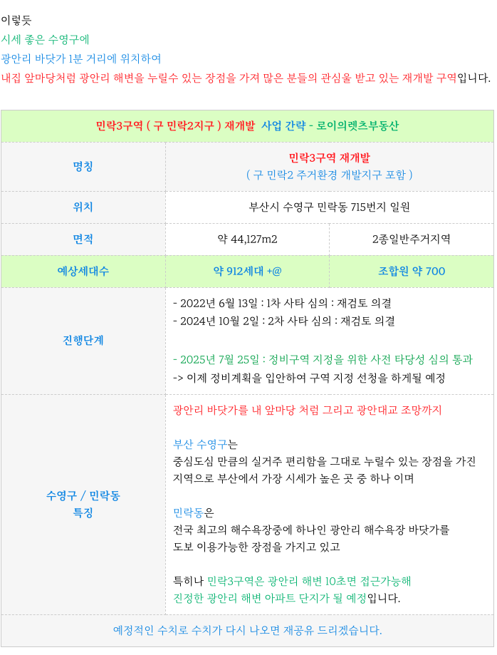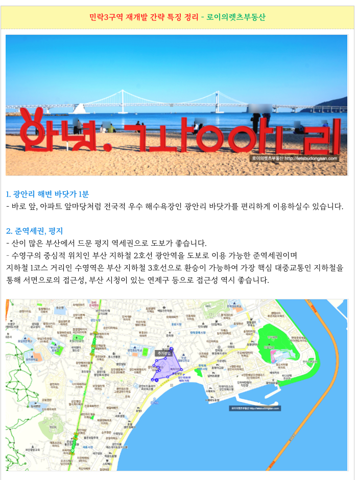 광안리 민락3구역 재개발 : 현 매물 + 진행