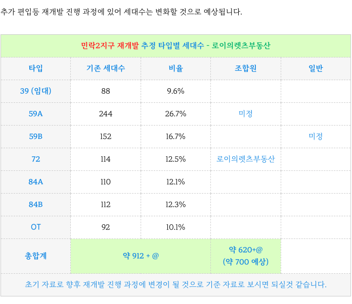 주변 재개발이 그러하듯 다소 조합원 비율이 높은 것이 아쉬운 점 입니다.