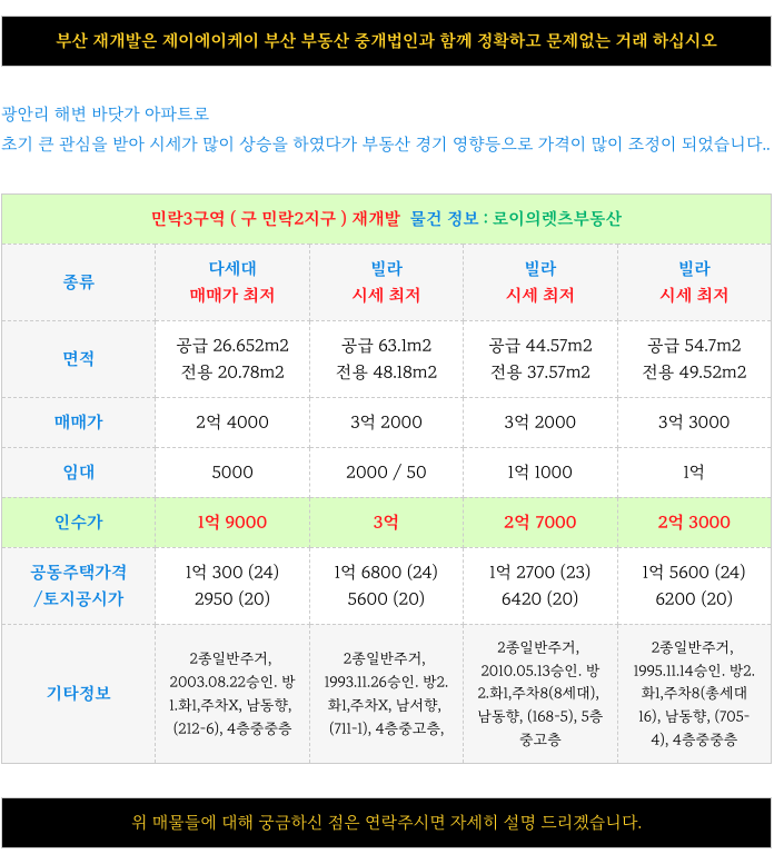 2. 민락3구역 재개발 : 현재 가능한 매물 소개 :