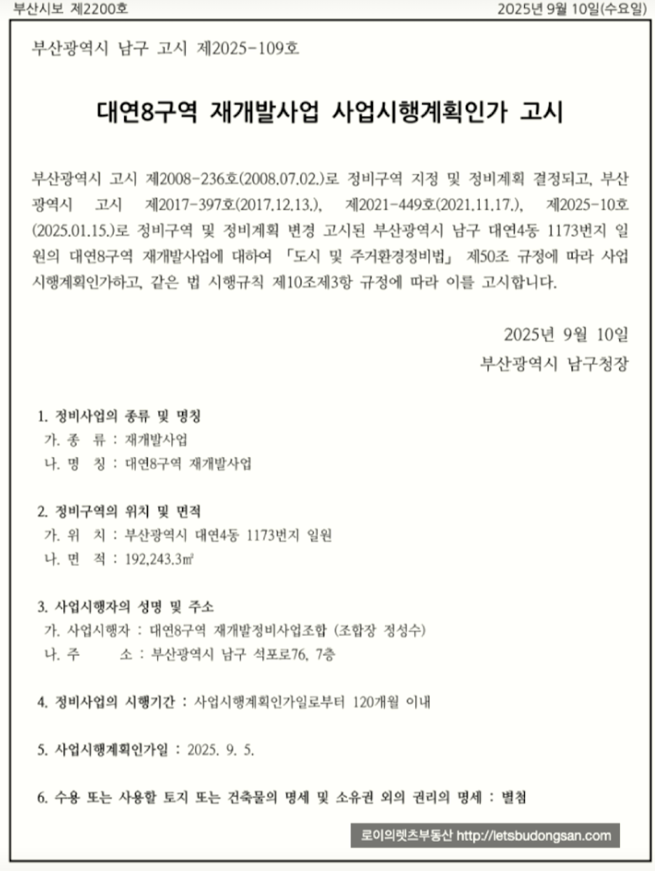 대연8구역 재개발 : 진행 체크 ( 사시고시완료 이후 일정) + 매물