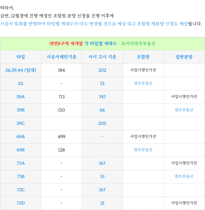 3. 타입별 세대수 체크 : 대연8구역 재개발 :