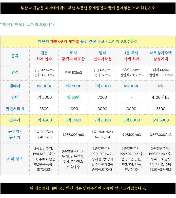 부산 전역 재개발에 대해 궁금하신 사항은 방문 또는 연락주시면 자세히 설명 드리겠습니다.