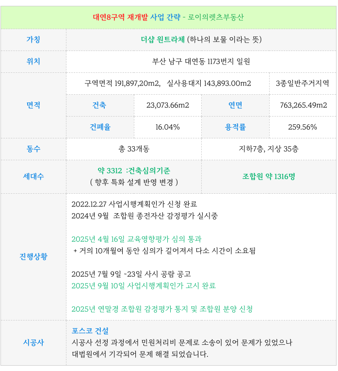 대연8구역의 추가적인 정보는 아래 페이지를 참고 부탁드립니다.