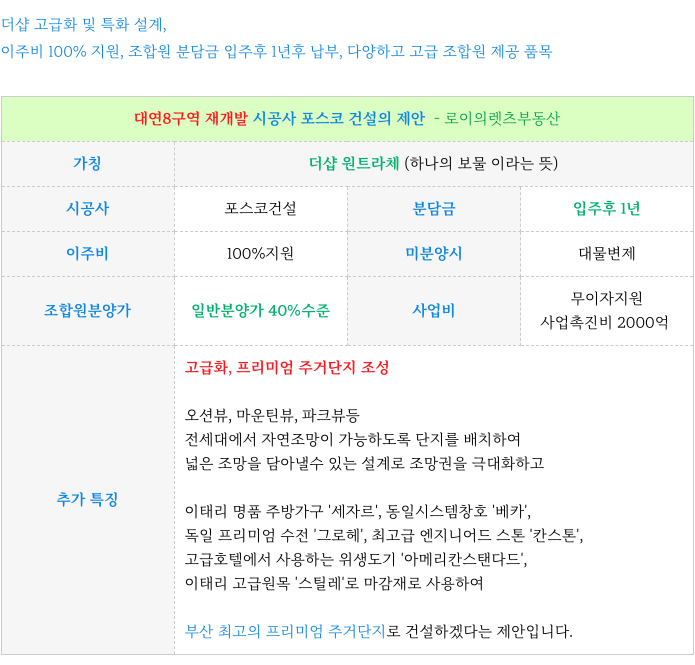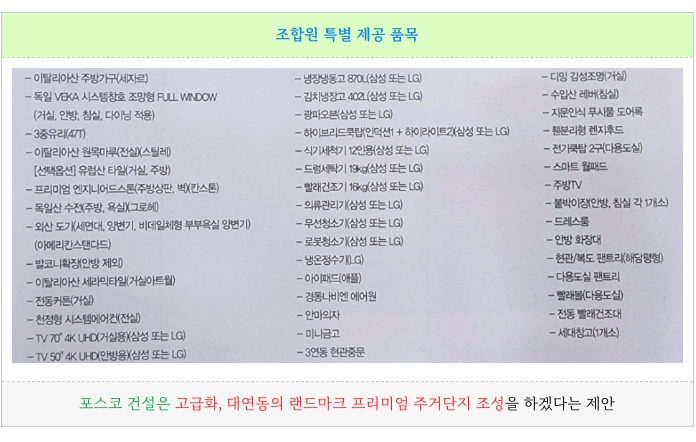 4. 시공사 포스코 건설 제안 주요 부분 간략 : 대연8구역 재개발 :