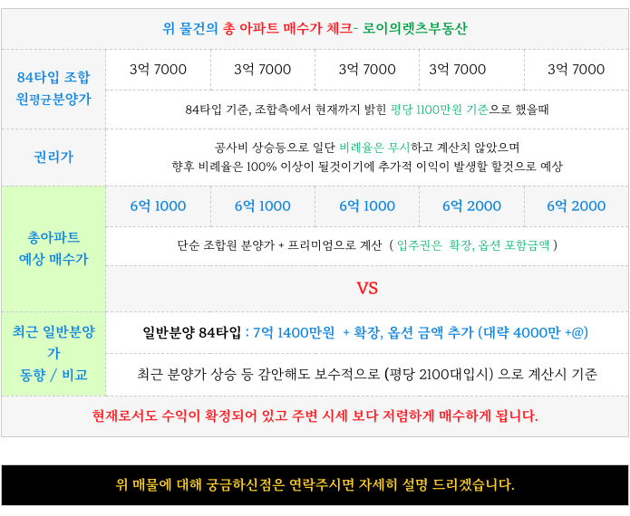 높은 사업성, 놀라운 조합원 분양가 이를 통해 이미 수익성 크게 확보된