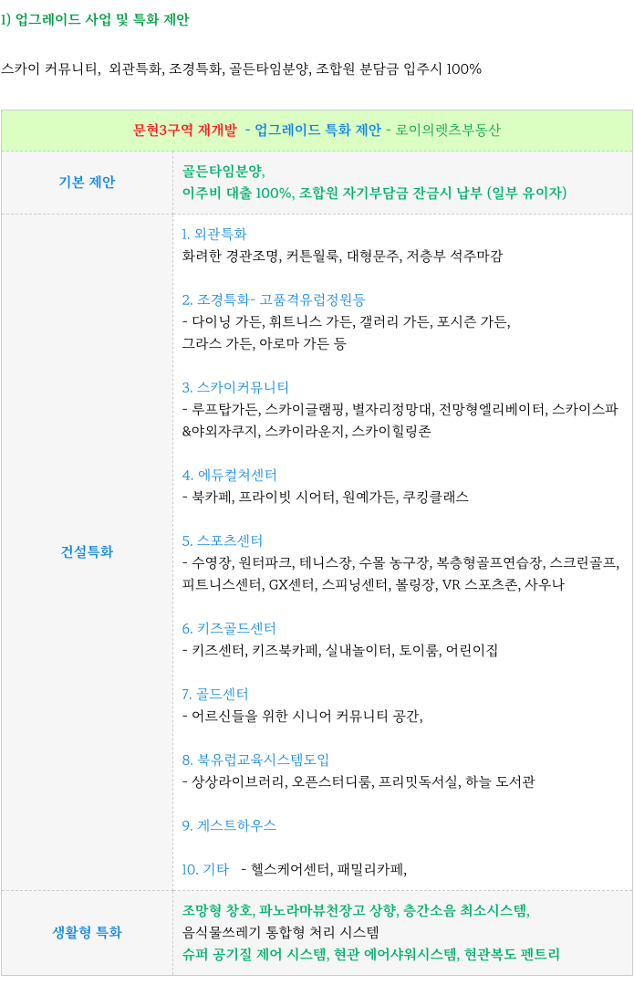 시공사는 문현3의 위상의 변화에 따라 조합원 분들을 위해 업그레이드 추가 제안을 하였습니다.