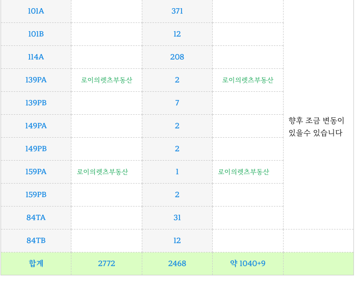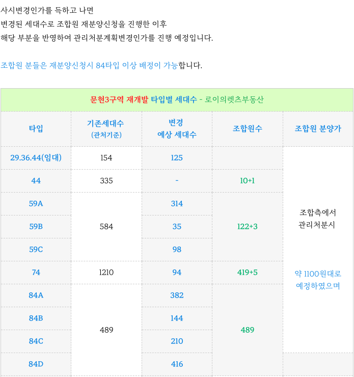 84타입 이상이 증가된 타입별 세대로 사업시행계획변경인가를 진행중에 있습니다.