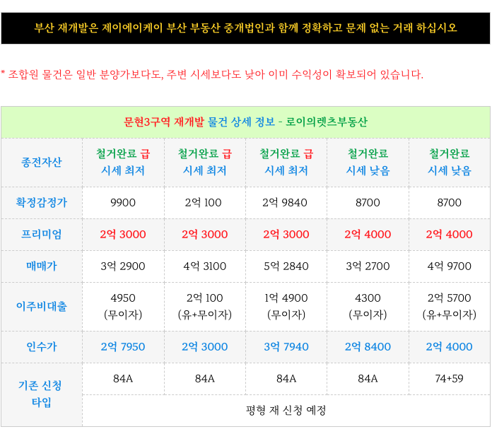 2. P최저 or 인수가 최저 매물 체크 : 문현3구역 재개발 :