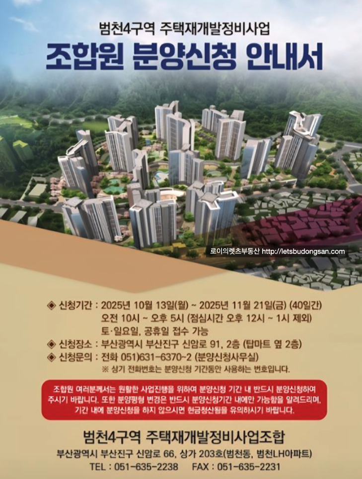 범천4구역 재개발 : 확정감정가 최저 매물 & 조합원 분양 신청 소식