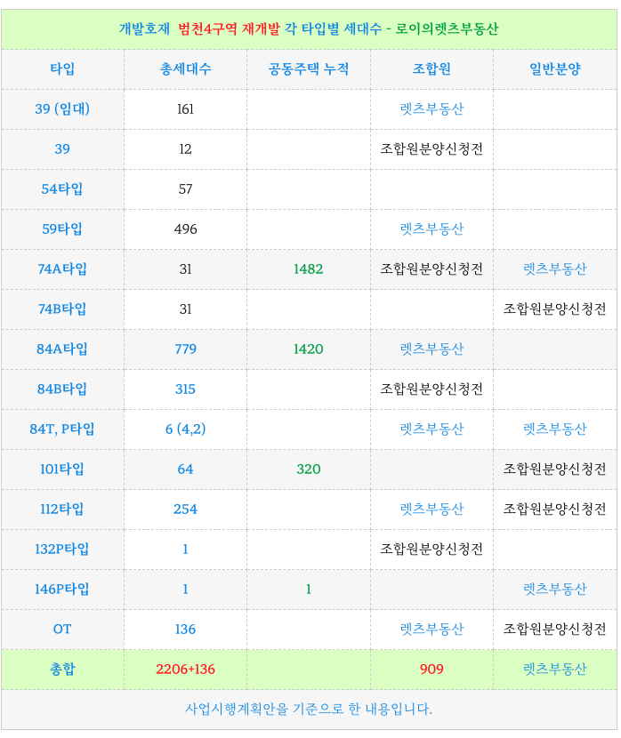 4. 조합원 분양 신청 + 타입별 세대수 : 범천4구역 재개발 :