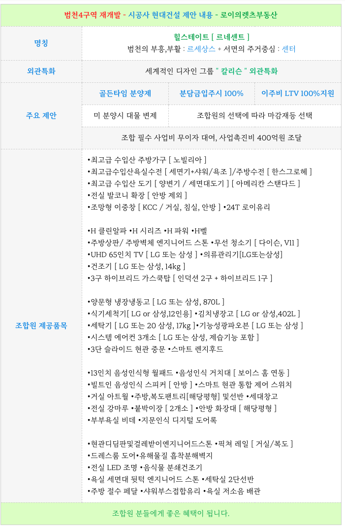 - 분담금입주시100%, 이주비 LTV 100%, 골든타임분양제