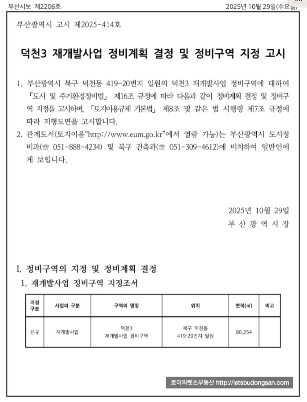 덕천3구역 재개발 : 소액 매물 & 구역 지정 고시 소식