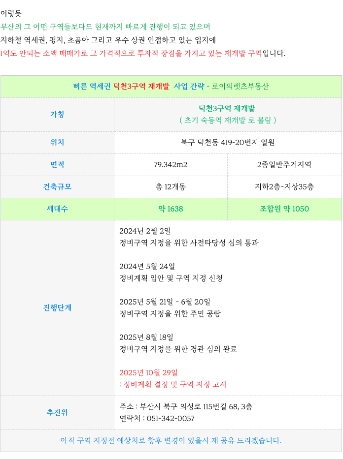 1. 덕천3구역 재개발 : 현 최/저/소/액 매물 :