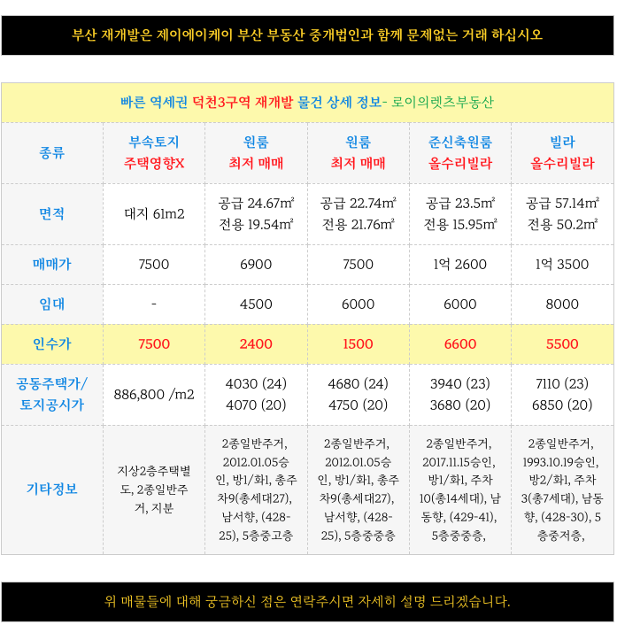 부산 전역 재개발에 대해 궁금하신 사항은 방문 또는 연락주시면 자세히 설명 드리겠습니다.