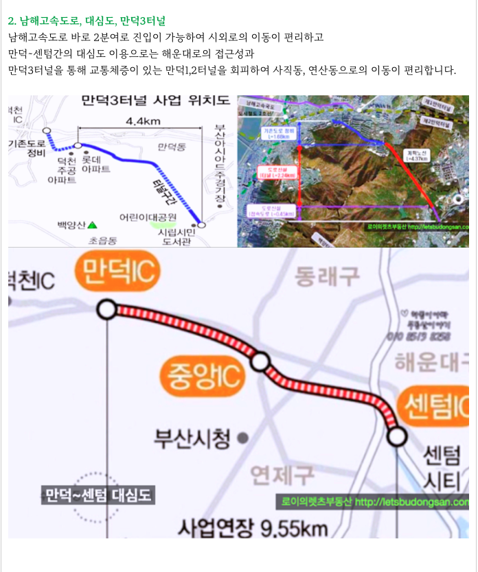 - 교통 편리 ( 남해고속도로, 만덕, 초읍터널 )