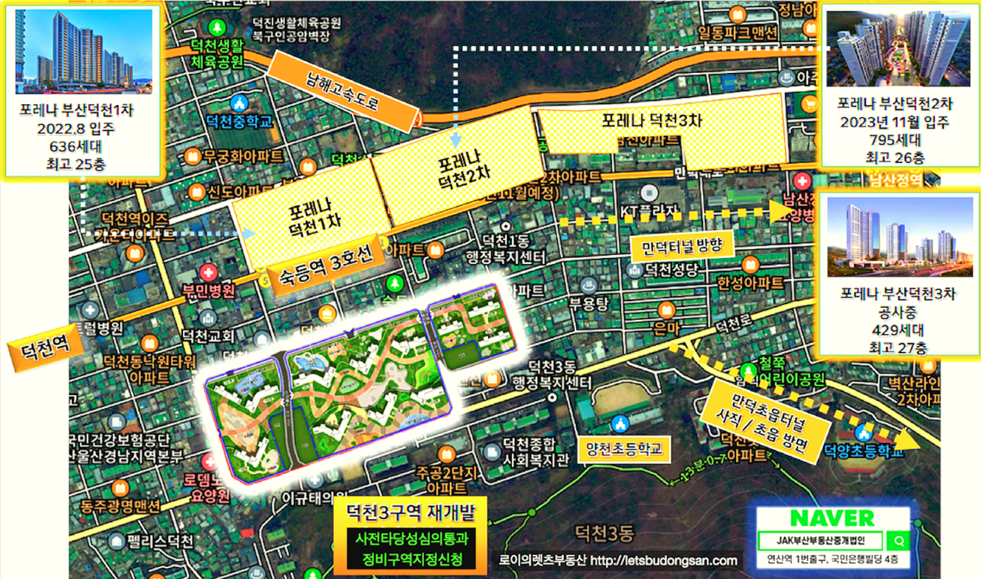 구역 맞은편으로 포레나 덕천 1,2,3차 1800여 세대가 신축 입주하여