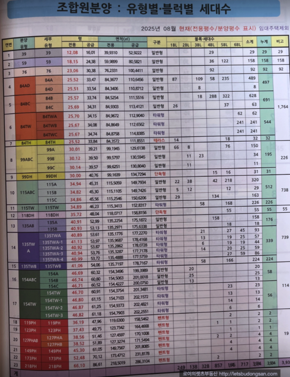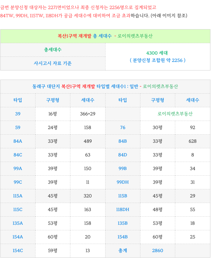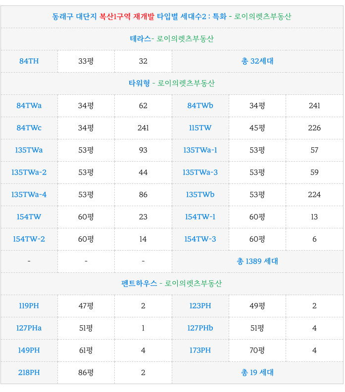 2. 각 타입별 세대수 : 복산1구역 재개발 :