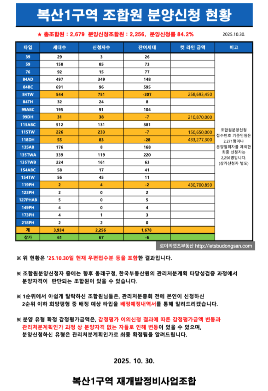 최근 10월 27일까지 조합원 분양신청을 종료하고 정리중에 있으며
