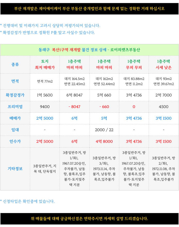 부산 전역 재개발에 대해 궁금하신 사항은 방문 또는 연락주시면 자세히 설명 드리겠습니다.