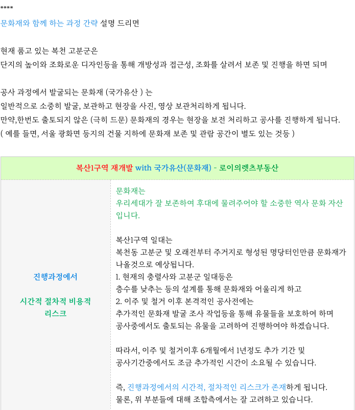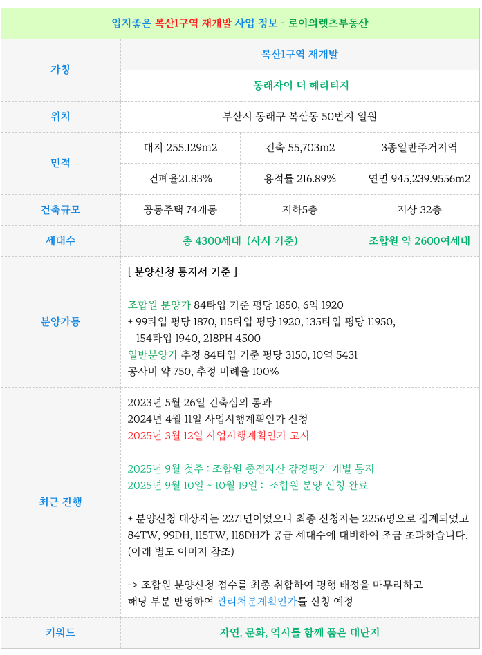 4. 구역 전체 상세 정보는 아래 페이지를 참고 부탁드립니다 : 복산1구역 재개발 :
