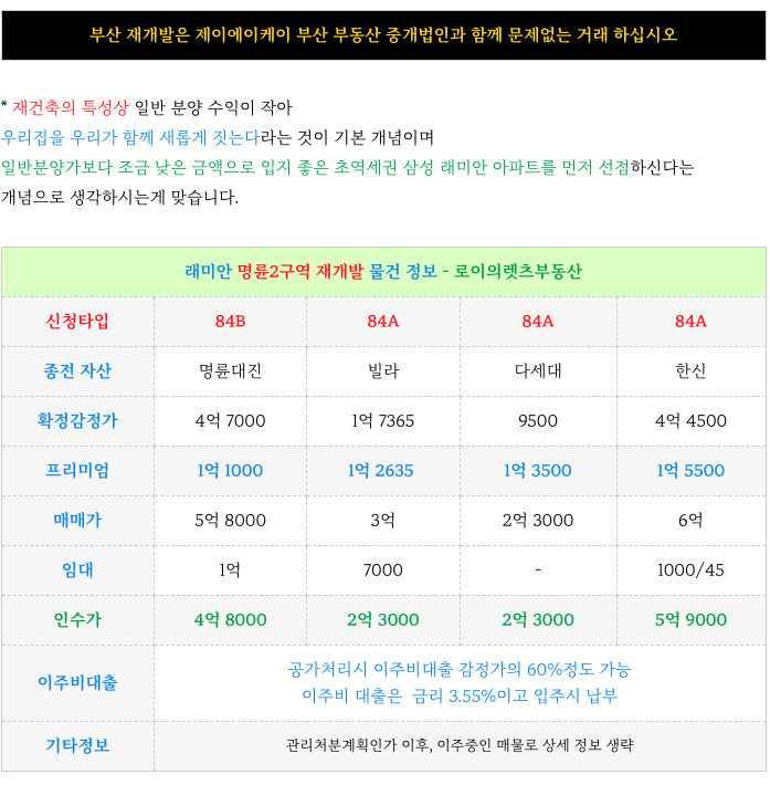(래미안) 명륜2구역 재건축 : 84타입 매물