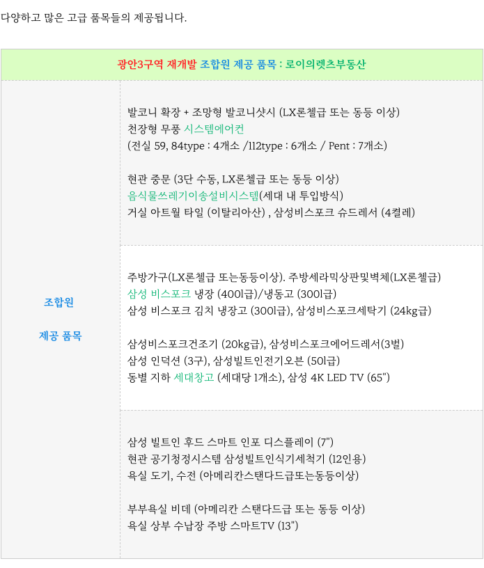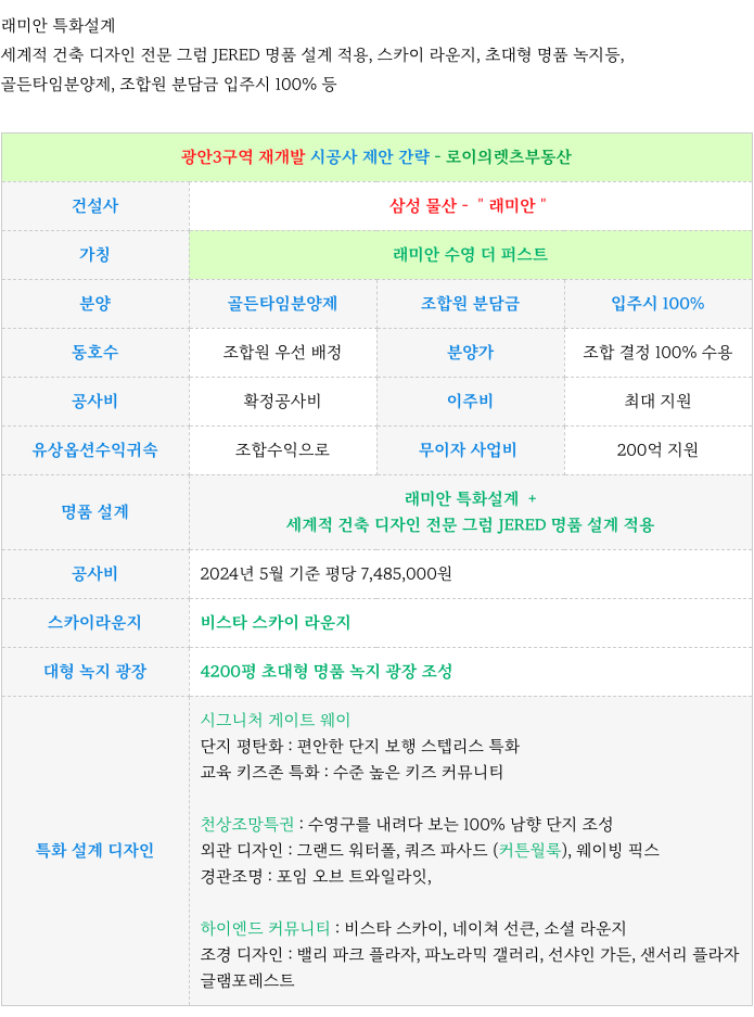 2. 광안3구역 재개발 : 시공사 삼성물산 주요 제안 :