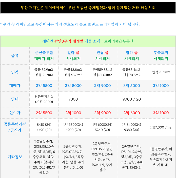 1. 광안3구역 재개발 : 급매 빌라등 매물 소개 :