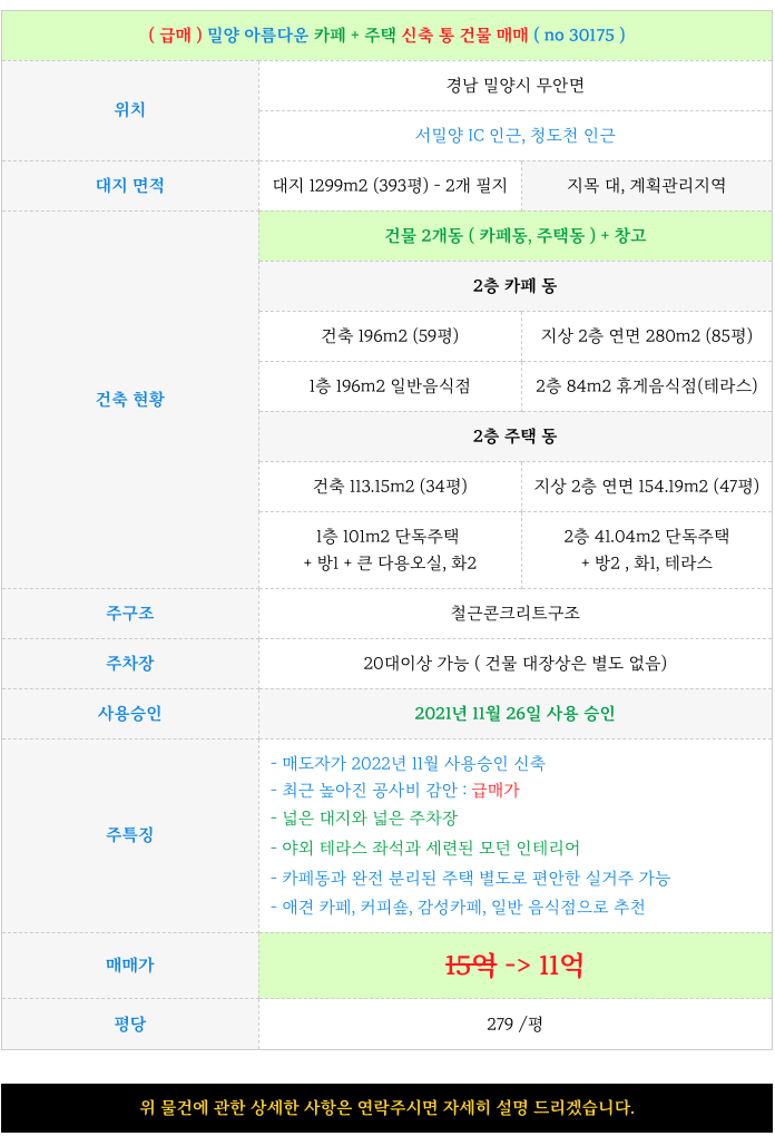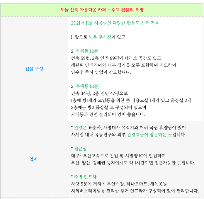 ( 급매 ) 밀양 아름다운 카페 + 주택 신축 통 건물 매매 물건 정보 정리 드립니다. ( no 30175 )