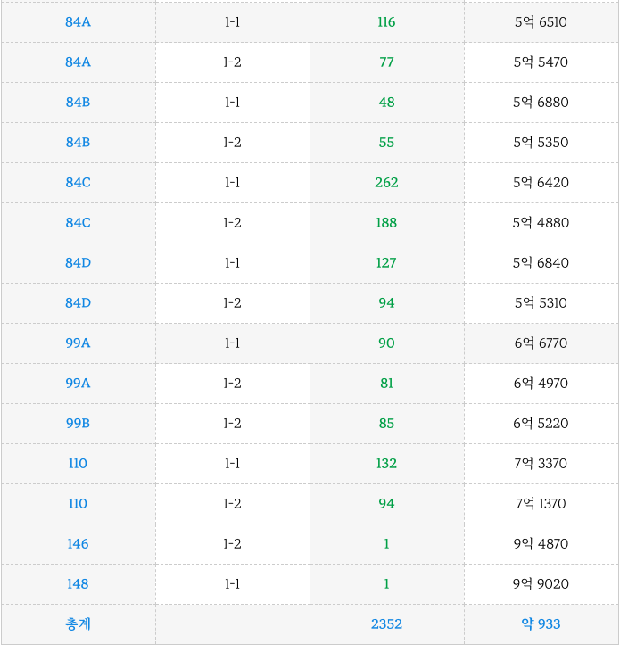 2. 타입별 세대수 + 분양가 : 서금사A구역 재개발 :