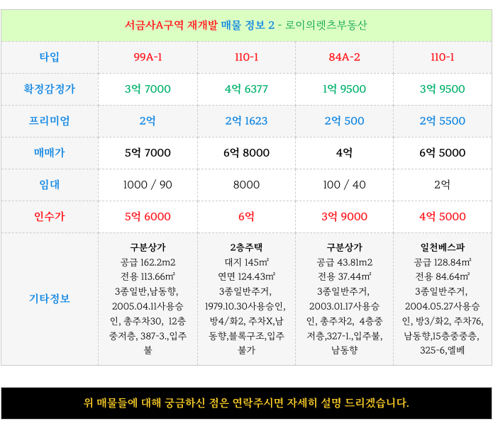 1. 타입별 매물 소개 : 서금사A구역 재개발 :