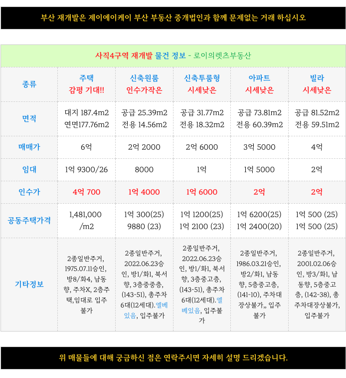 부산 전역 재개발에 대해 궁금하신 사항은 방문 또는 연락주시면 자세히 설명 드리겠습니다.