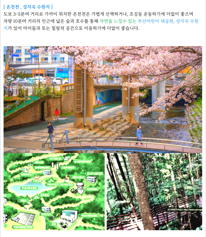 산책과 휴식, 가벼운 운동 등 좋은 자연 환경을 누릴수 있는 큰 강점을 가지고 있습니다.