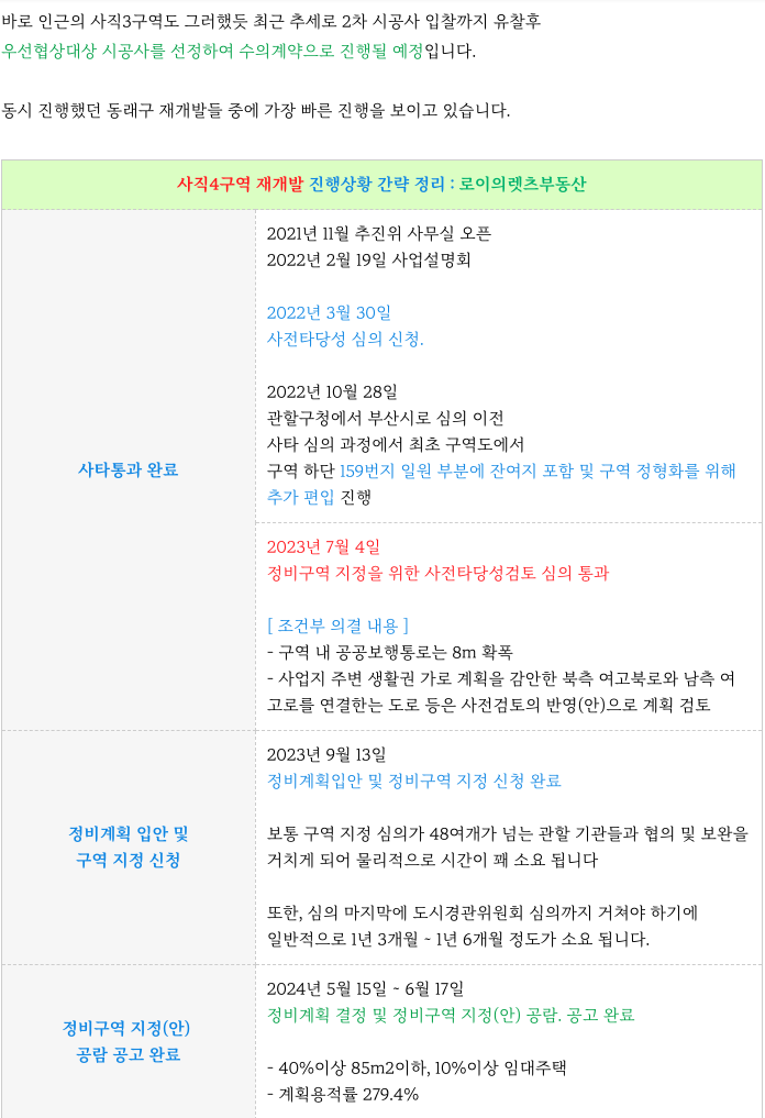 4. 사직4구역 재개발 : 사업 주요 특징 간략 정리 :