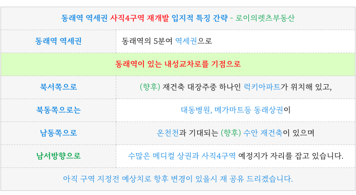 - 동래역 역세권, 평지, 온천천, 초품아, 중품아