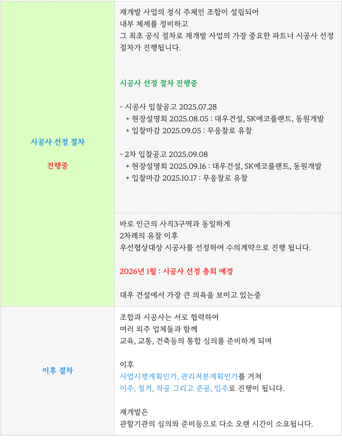 재개발 사업 진행의 가장 중요한 파트너 시공사 선정 절차를 진행중에 있는데