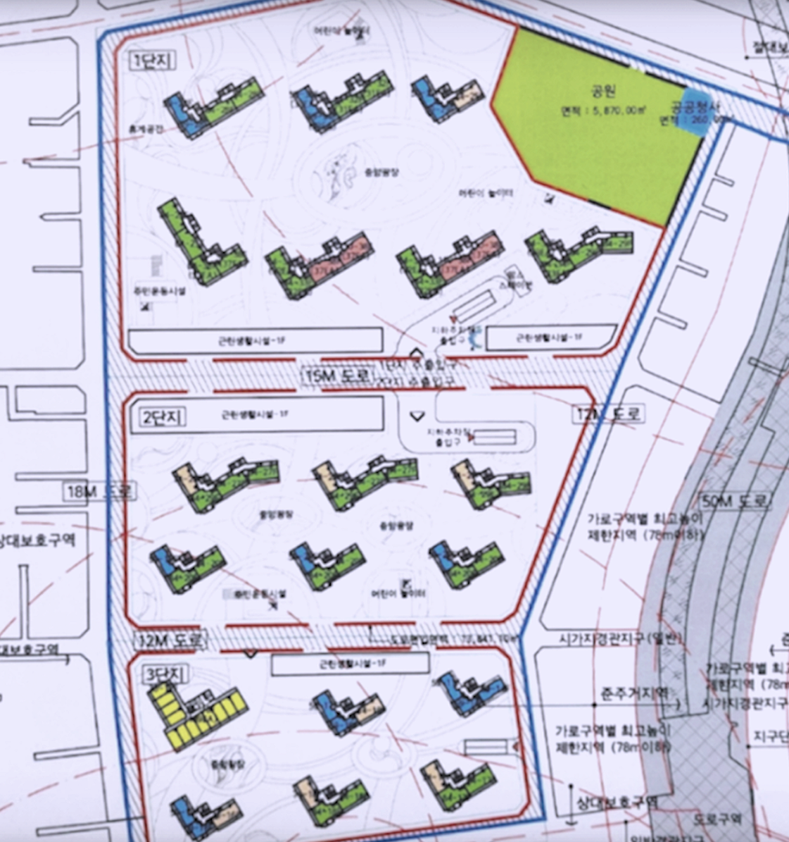 단지의 효율적 배치가 가능하여 전체 토지의 활용도가 좋고
