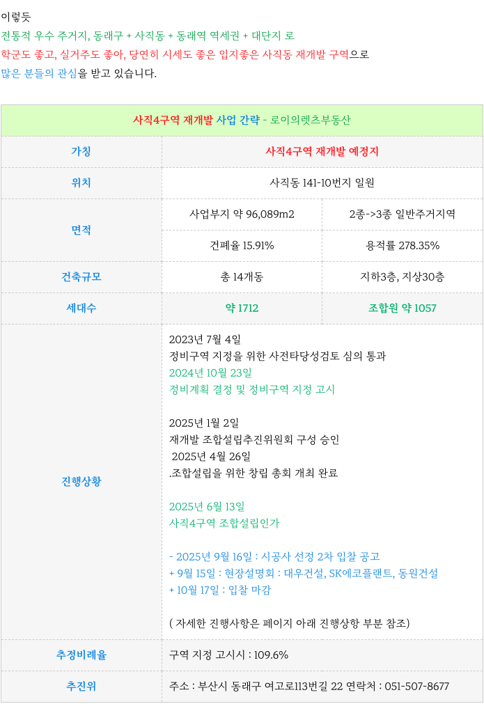 사직4구역 재개발 : 소액 매물 정보 드리겠습니다.