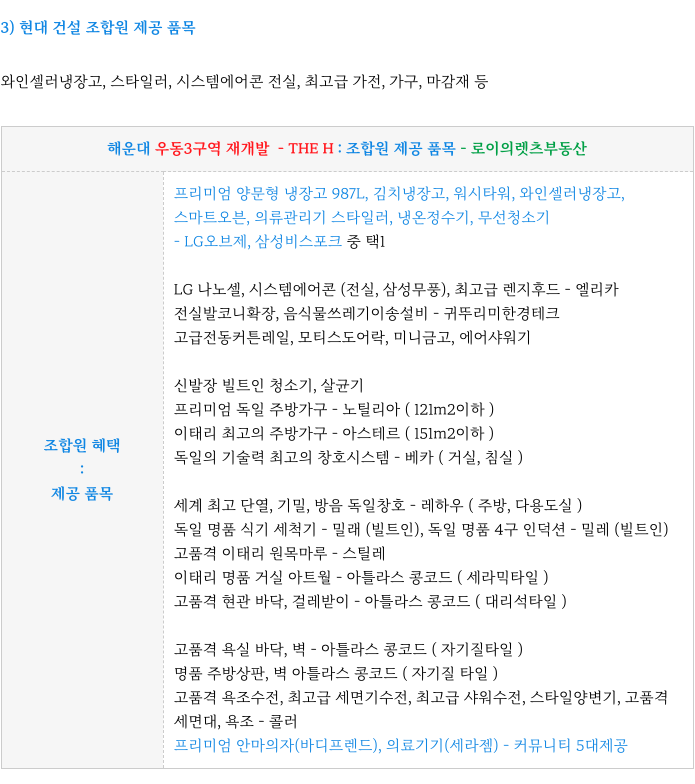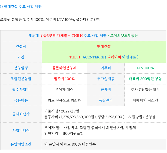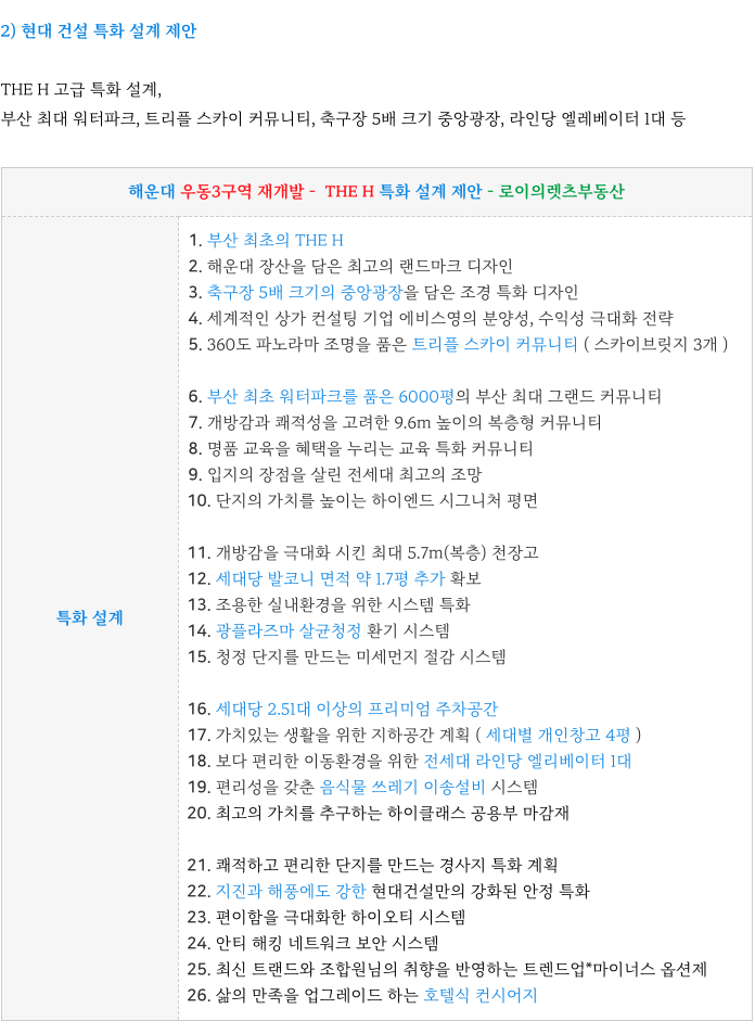 3. 현대건설 THE - H 주요 제안 : 우동3구역 재개발 :