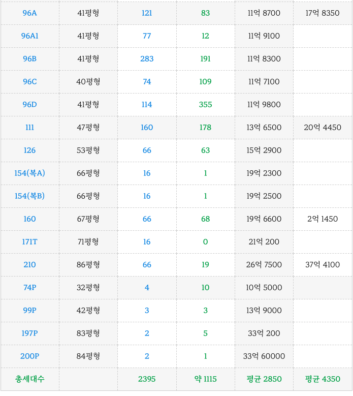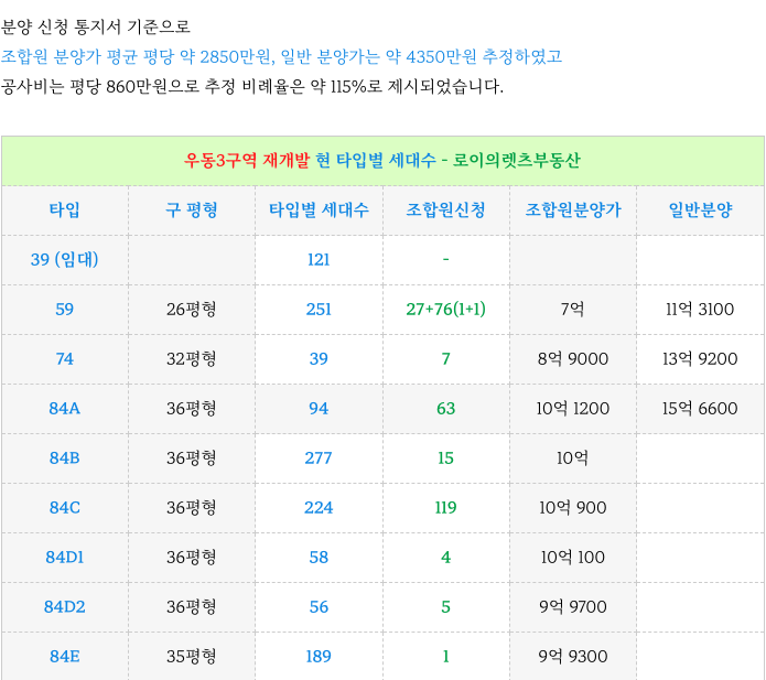 4. 타입별 세대수 + 분양가 체크 : 우동3구역 재개발 :