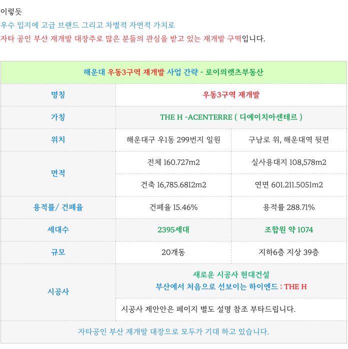우동3구역 재개발의 추가적인 정보는 아래 페이지를 참고 부탁드립니다.