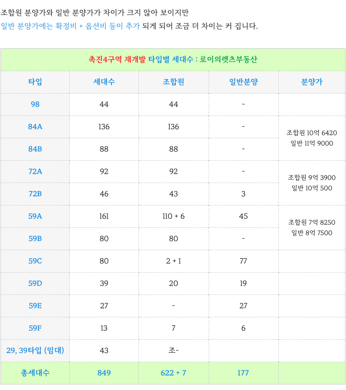 분양신청을 하지 않은 조합원이 다수 있어 일반 분양 숫자가는 조금 늘었습니다.