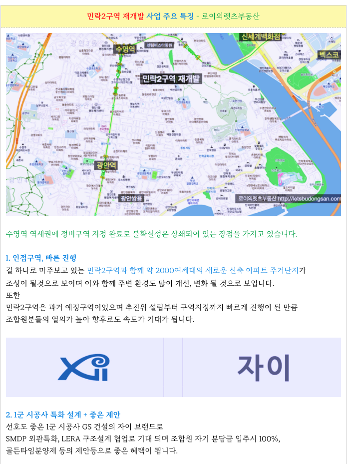 2. 민락2구역 재개발 : 현 매물 소개 :