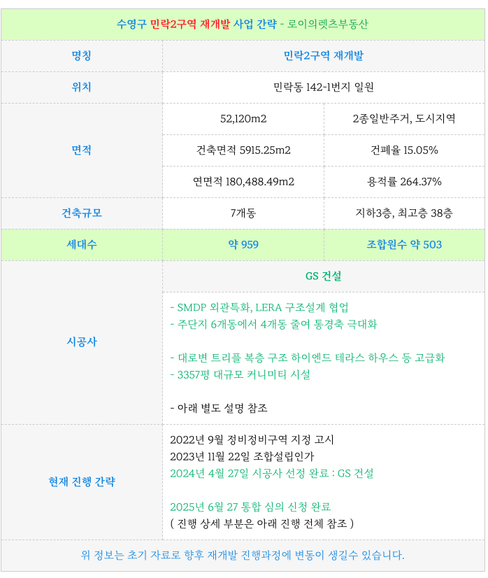 1. 민락2구역 재개발 : 사업 간략, 최근 진행 상황 :