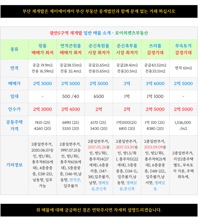 1. 광안5구역 재개발 : 현재 가능 매물 소개 :