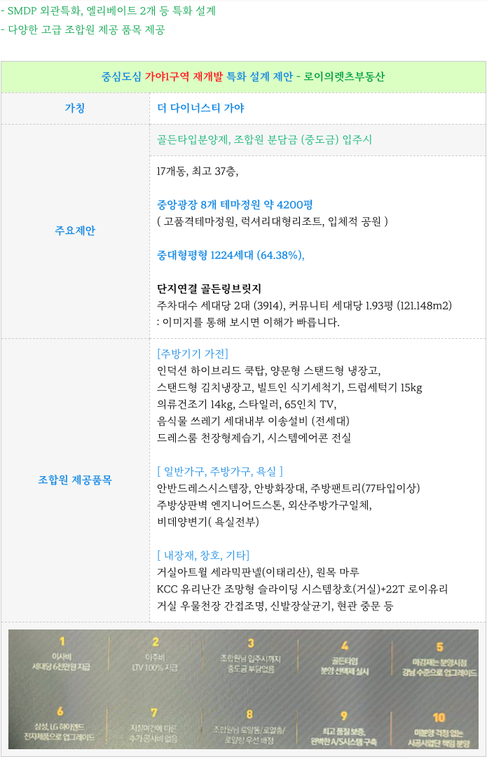 가야1구역의 위상의 변화에 따라 시공사 측에서는 추가적인 업그레이드 제안을 하였습니다.