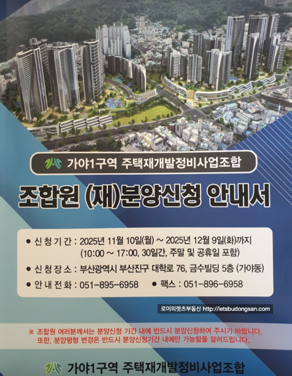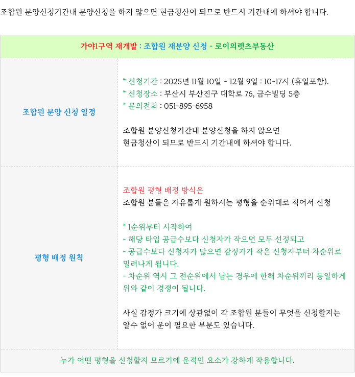 5. 가야1구역 재개발 : 조합원 (재)분양 신청 방법, 포인트 :