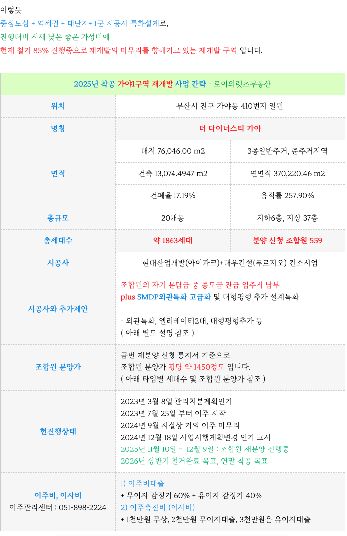 6. 가야1구역 재개발 : 사업 주요 특징 간략 재정리 :