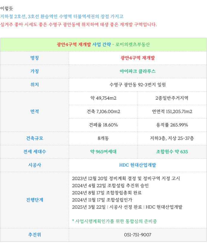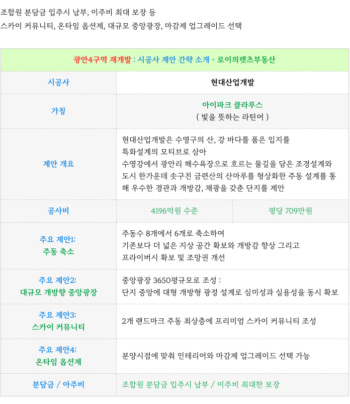 5. 광안4구역 재개발 : 사업 주요 특징 간략 정리 :