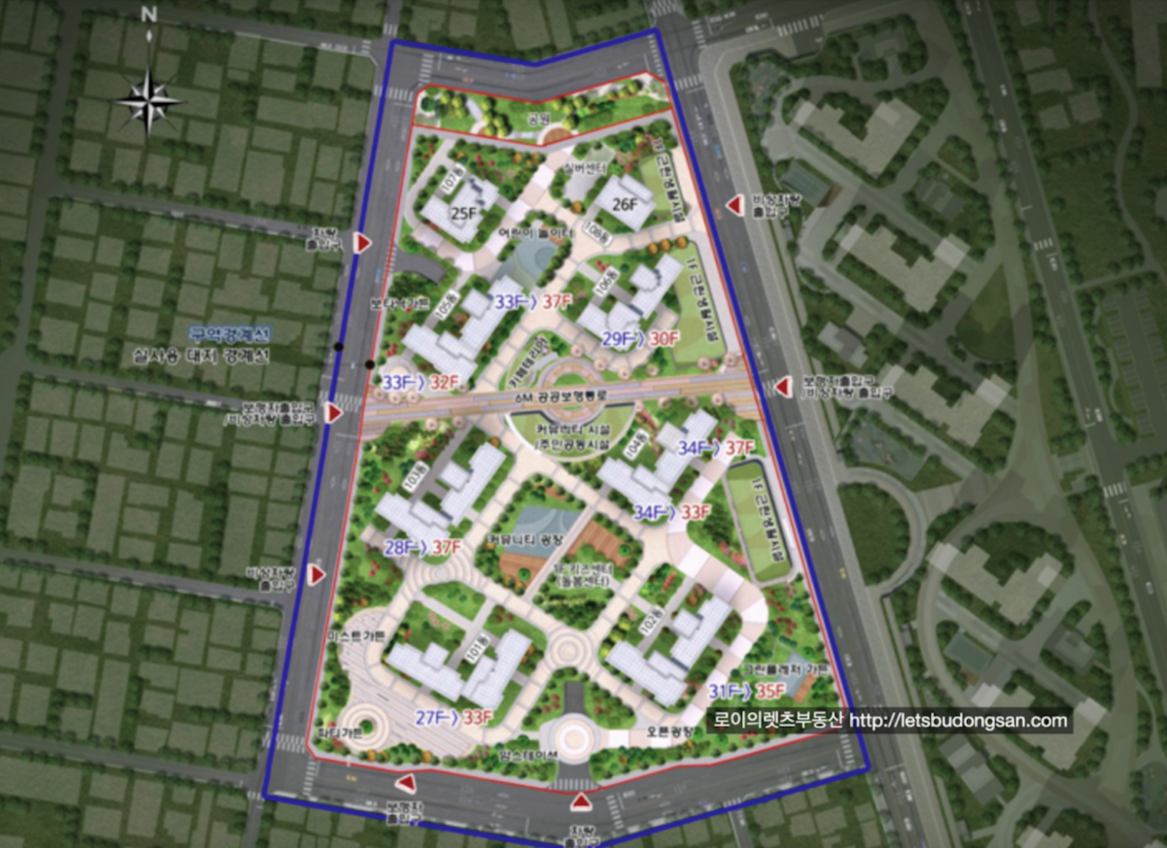 구역 전체가 평지로 구성되어 있어 단지의 배치가 효율적이게 되어 토지의 활용도가 좋고
