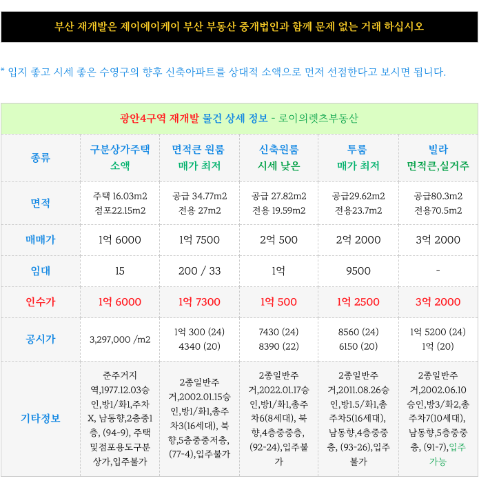 1. 광안4구역 재개발 : 현 매물 소개 :